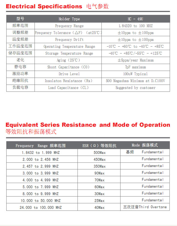 晶體振蕩器 > 49系列 > HC-49U